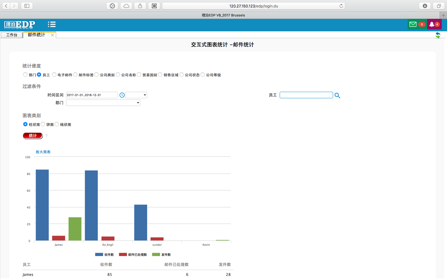 可以从不同维度分析往来邮件的收发情况,了解工作效率以及客户的往来邮件行为。